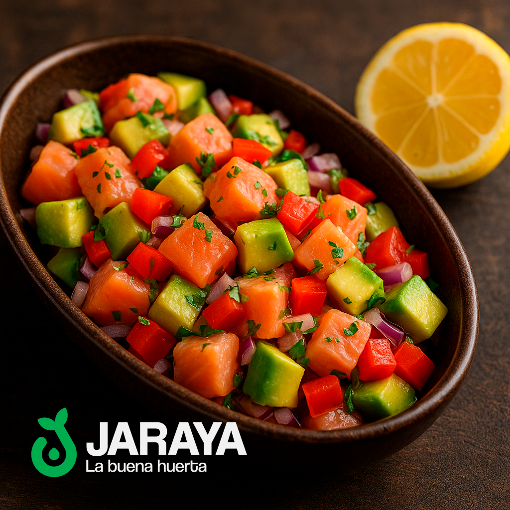 🍴 La palta JARAYA aporta una textura cremosa y natural que realza el sabor fresco del salmón. Ideal para quienes buscan una opción saludable y deliciosa para compartir.
